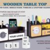 A132 – Wooden Table top with Clock, mobile stand, tumbler, and Lifetime Calendar | Branding included MOQ 200 pcs