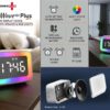 – Modern square LED clock with integrated Bluetooth speaker and RGB lighting