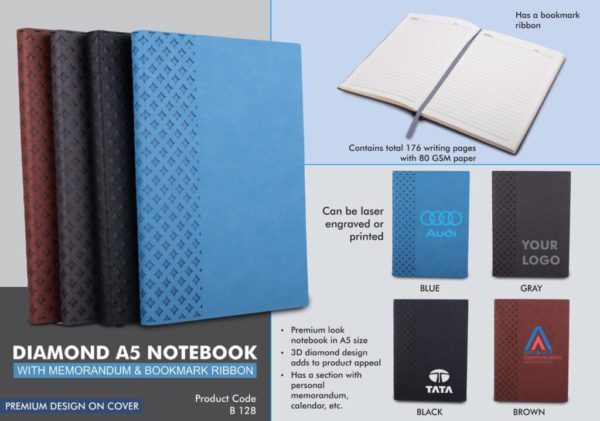 B128 – Diamond A5 notebook with memorandum & Bookmark ribbon