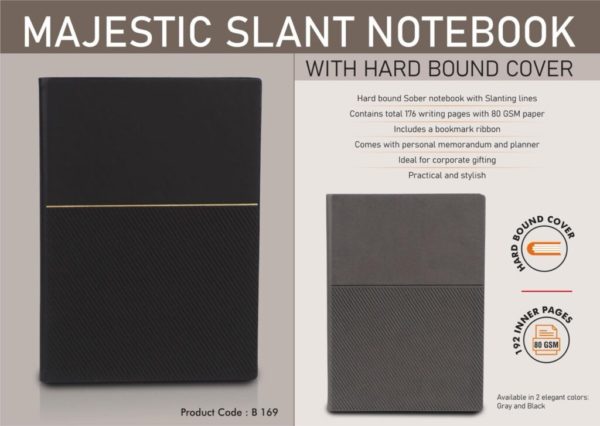 B169 – Majestic Slant Notebook with Hard bound cover | Includes Memorandum and Bookmark Ribbon