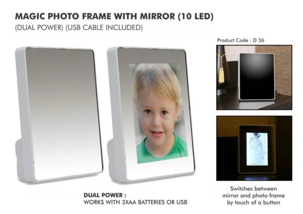 D36 – Magic Photo Frame with Mirror (10 LED) (Dual Power) (USB cable included)