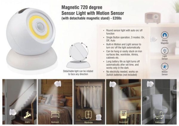 E208s – Magnetic 720 degree Sensor light with motion sensor (with detachable magnetic stand)