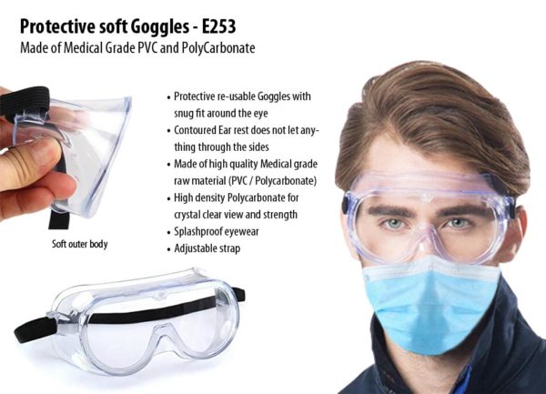 • E253 – Protective soft Goggles | Made of Medical Grade PVC and Polycarbonate