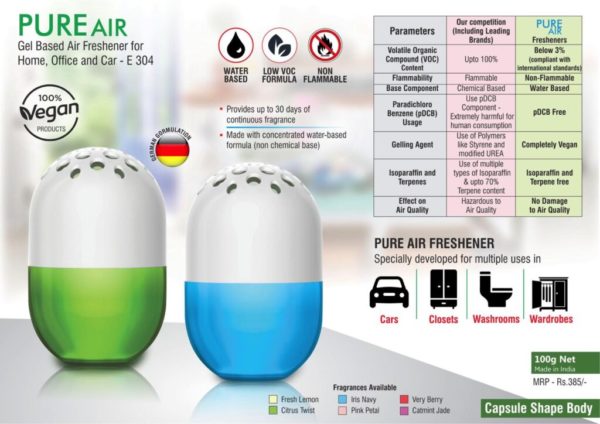 E304 – Pure Air: Gel based air freshener for Home, Office and Car | Capsule shape | Net 100 grams | MRP 385