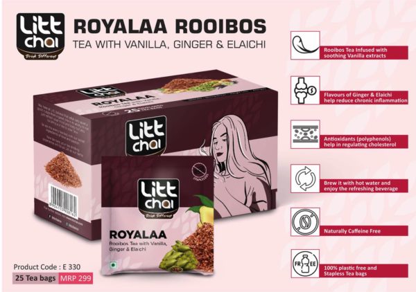 E330 – Litt Chai Royalaa Rooibos Tea with Vanilla, Ginger & Elaichi | 25 Tea bags | MRP 299