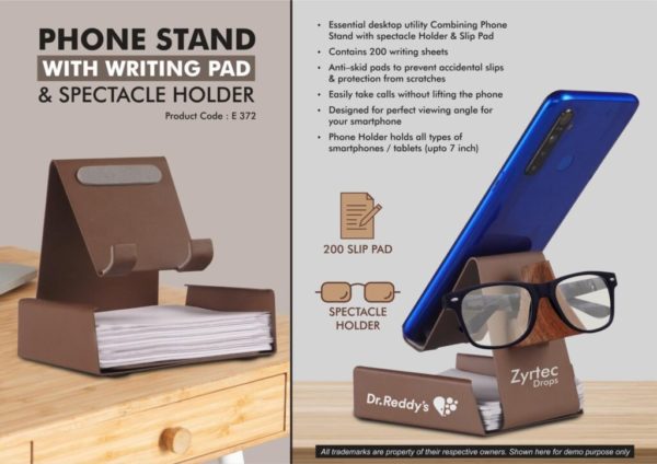 E372 – Metal Phone stand with Writing pad & Spectacle holder | 200 writing sheets | Perfect for glasses & goggles