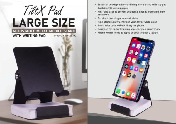 E390 – TiltX Pad: Large size Adjustable metal mobile stand with writing pad | 200 writing sheets