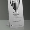 Stainless steel desk trophy with a winners cup on it. Comes in a gift box. Height: 16cm (approx)