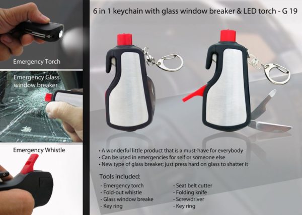 G19 – 6 in 1 keychain with glass window breaker & LED torch