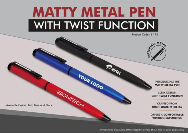 Be the first to review “L172 – Matty Metal Pen with twist function” Cancel reply