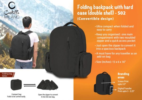 S02 – Folding backpack with hard case (double shell) by Castillo Milano