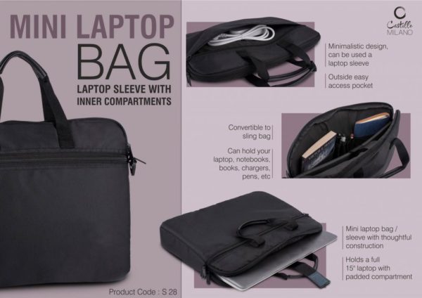 S28 – Mini Laptop bag / Laptop Sleeve with inner compartments | Convertible to Sling Bag