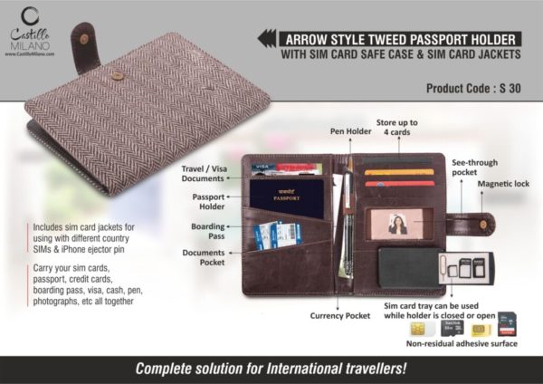 S30 – Arrow style Tweed Passport holder with Sim Card Safe Case & Sim Card Jackets