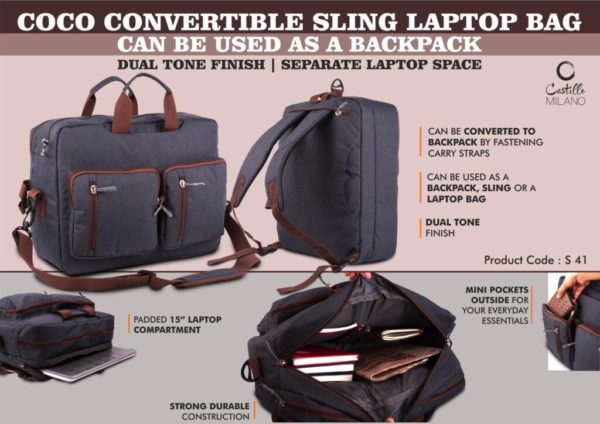 S41 – Coco Convertible Sling Laptop Bag | Can be used as a backpack | Dual tone finish | Separate laptop space