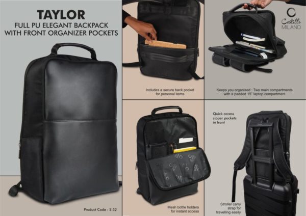 S52 – Taylor: Full PU Elegant backpack with Front organizer and Hidden back pocket
