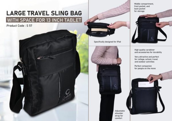 S57 – Large Travel sling bag with space for 13 inch Tablet | Perfect for Large iPad