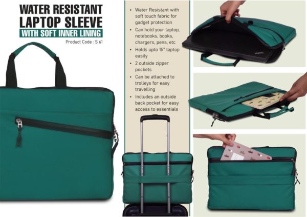 S61 – Teal: Water Resistant Laptop Sleeve with Soft inner lining | 3 outside spacious pockets | Soft touch fabric for gadget protection