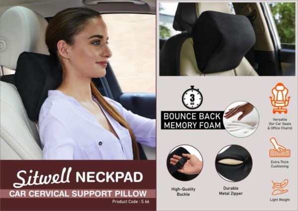 S66 – SitWell NeckPad: Car Cervical Support Cushion Pillow with Soft fabric | 3 second bounce back memory foam