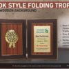 • F16 – Book Style Folding Trophy with Award Motif | 8.5 x 6.5″ | Wooden Background