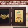 • F20 – Book Style Folding Trophy with Handshake Motif | 8.5 x 6.5″ | Solid Background